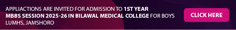 Online applications are invited for admissions in following BS Degree / Diploma Programs at Institutes of Liaquat University of Medical & Health Sciences, Jamshoro & LIMHS Thatta Campus for the Academic Session 2025-2026